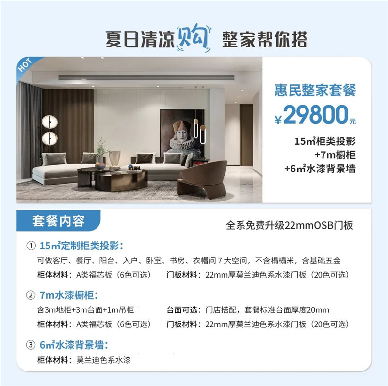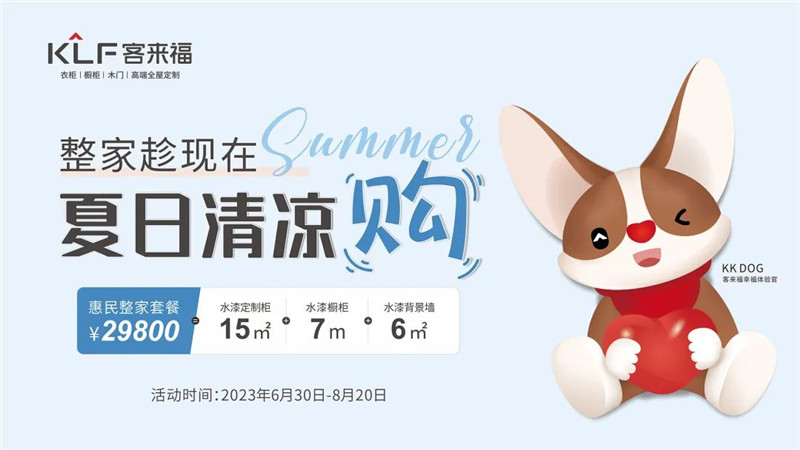 2023年6月30日-8月20日,客來(lái)福年中大促帶來(lái)惠民整家套餐¥29800,甄選水漆福芯板并嚴(yán)格遵守國(guó)家環(huán)保等級(jí)標(biāo)準(zhǔn),打造高性?xún)r(jià)比的健康環(huán)保整家。