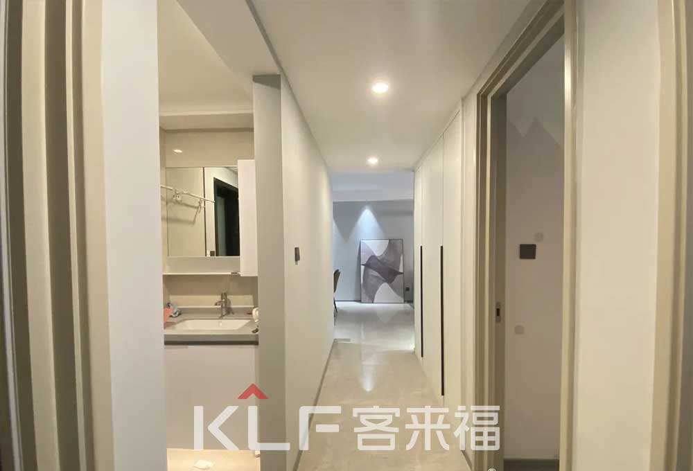 客廳通道臥室的過道很寬,所以設(shè)計(jì)出一款嵌入式的柜子,不僅不占用空間,還留出很大的空間收納衣物,相當(dāng)于一個(gè)小型的儲物間。乳白色的柜體不會突兀,到頂?shù)囊鹿耖T板采用了拉直器固定,即是再高門板也不會變形彎曲。