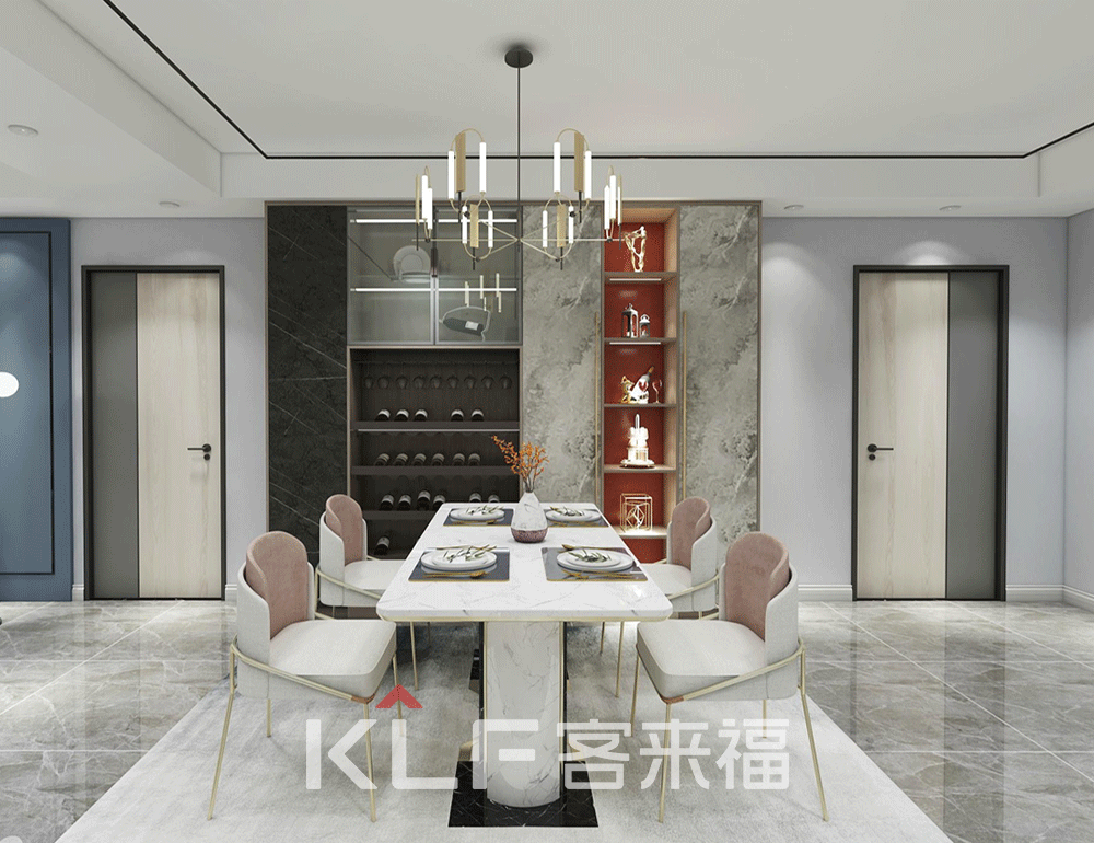 考慮到男主人藏酒的習慣,我們在餐廳邊融入餐邊柜,充分利用墻面空間,讓收納簡潔更輕松,開放式柜體設(shè)計也讓酒成為生活中的藝術(shù)品。