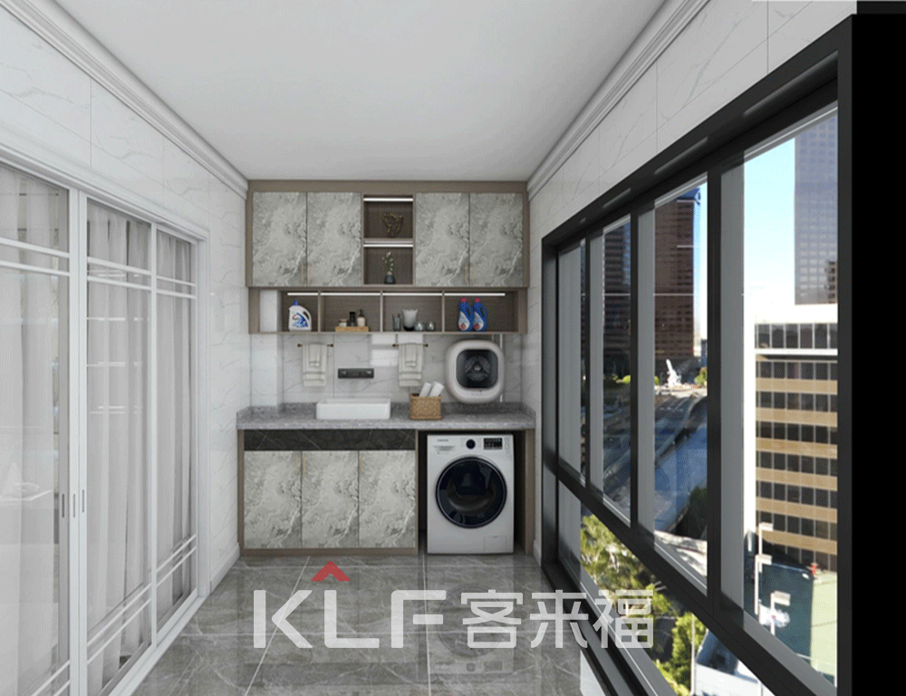 我們摒棄了陽臺空間的雜亂風格,左右兩側(cè)各打造了一個陽臺柜,將洗衣機等物品與陽臺柜組合,節(jié)省了空間,讓陽臺看起來更加干凈整潔,洗衣曬衣也更為方便,營造舒適養(yǎng)眼的色調(diào)和平和舒適的視覺氛圍。