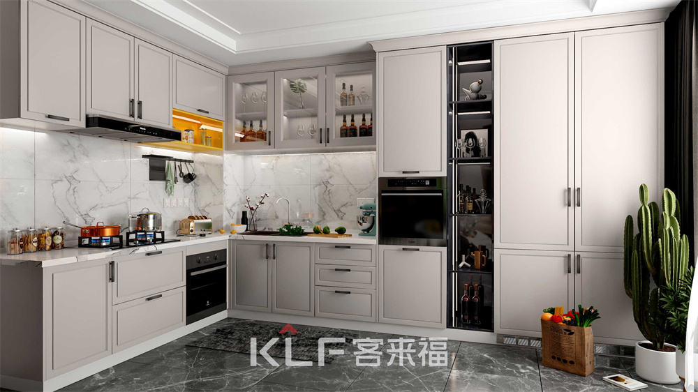 轉(zhuǎn)角貼墻構(gòu)造充分利用戶型,一體式定制櫥柜,與屋頂和地面形成色彩承接,不突兀也不喧賓奪主,所有一切都這樣恰到好處。L型廚房構(gòu)造動線合理,做菜便捷,每一位大廚看到它都會愛不釋手。