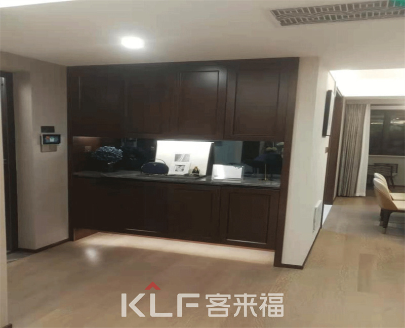 按照戶主的設(shè)想,我們?cè)谛P(guān)處設(shè)置了一柜到頂?shù)男P(guān)柜,中空和下空設(shè)計(jì),讓鞋子和隨手物件各歸其位,凌亂的玄關(guān)空間變得整齊。整墻深色系柜體博朗大氣,大開(kāi)柜門設(shè)計(jì),讓收納不再是難題。