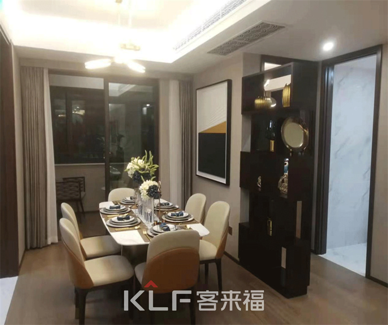 走過(guò)客廳,轉(zhuǎn)身就來(lái)到了餐廳空間,柔軟布料搭配木質(zhì)框架,營(yíng)造典雅奢華的餐廳環(huán)境,在暖陽(yáng)如火的燈光映射下,食物仿佛鍍上了一層朦朧的金。餐邊柜的設(shè)計(jì)充分考慮到女主人的收納要求。