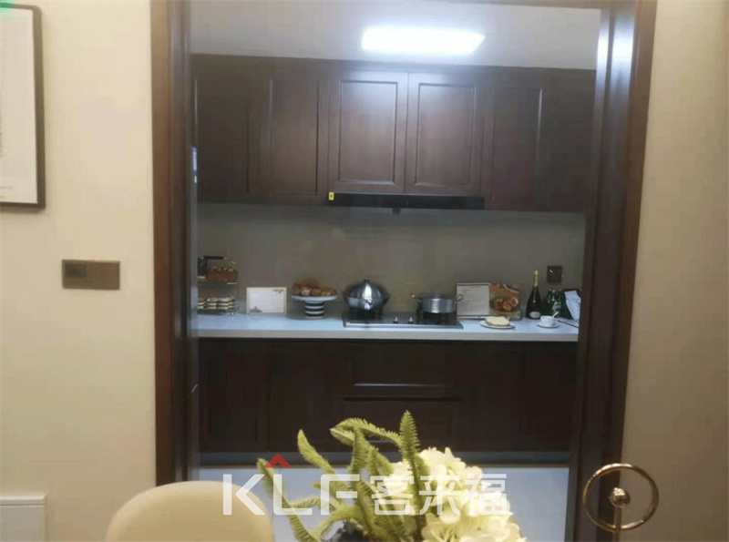 靠近餐廳一旁就是充滿煙火氣息之地,寬U型構(gòu)造,讓廚房更大,空間寬廣的同時(shí),動(dòng)線設(shè)計(jì)合理,依據(jù)女主人的身高量身打造的櫥柜,讓做放拿取都簡(jiǎn)便自如。深色系和白色搭配,讓操作臺(tái)更顯明亮。
