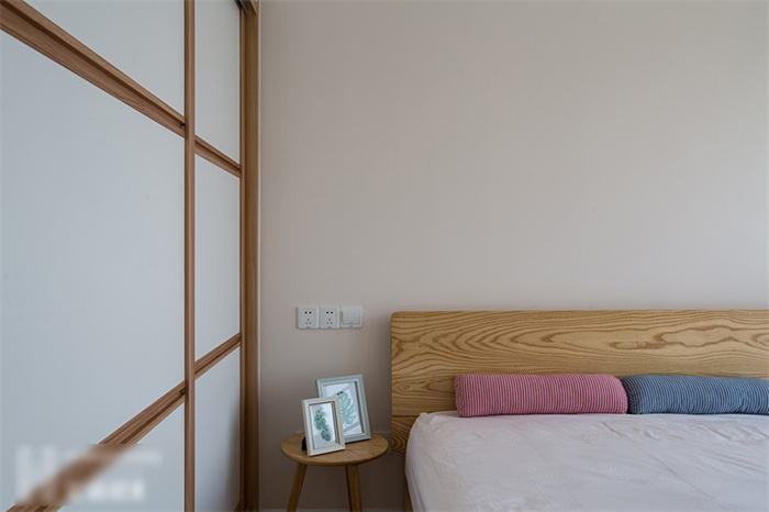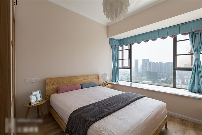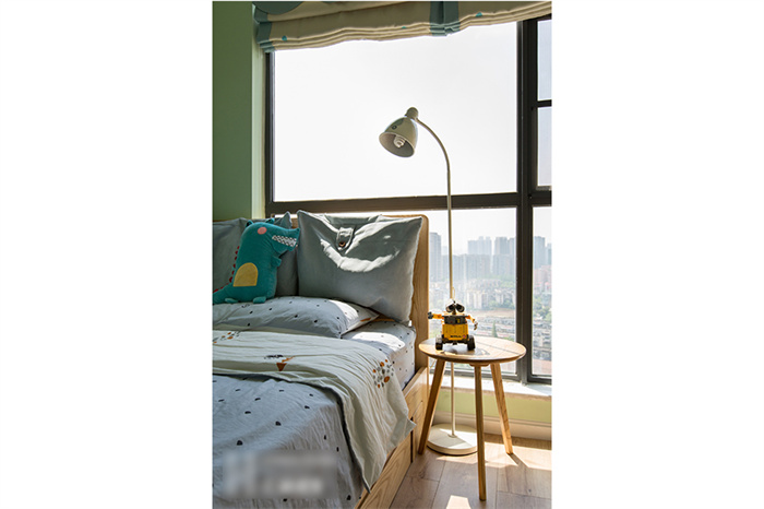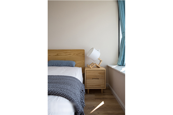主臥的設(shè)計從實用性出發(fā),白色的衣柜和墻面形成一體,顯得生氣十足;在床頭柜的選擇上也是遵從屋主追求自然的理念,原木床體,搭配設(shè)計感十足的幾何造型床頭燈,渲染出濃濃的自然氣息。湖藍色的飄窗無不在表達簡約、舒適的生活主題。“當(dāng)清晨的第一縷陽光透過窗簾的縫隙擠進來,余生,我想把日子過成自己想要的模樣?!?/span>