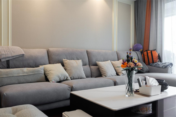 客廳整體由電視背景墻、茶幾和沙發(fā)組成,綠植和花瓶的擺放讓客廳空間熠熠生輝。