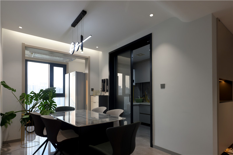 有室有食,簡單幸福。堅守功能主義的理念,以結(jié)構(gòu)為入眼點布局色彩、設(shè)計,使得動線明晰;蘭迪灰門板與黑色調(diào)的中和,簡約又不失大氣感。