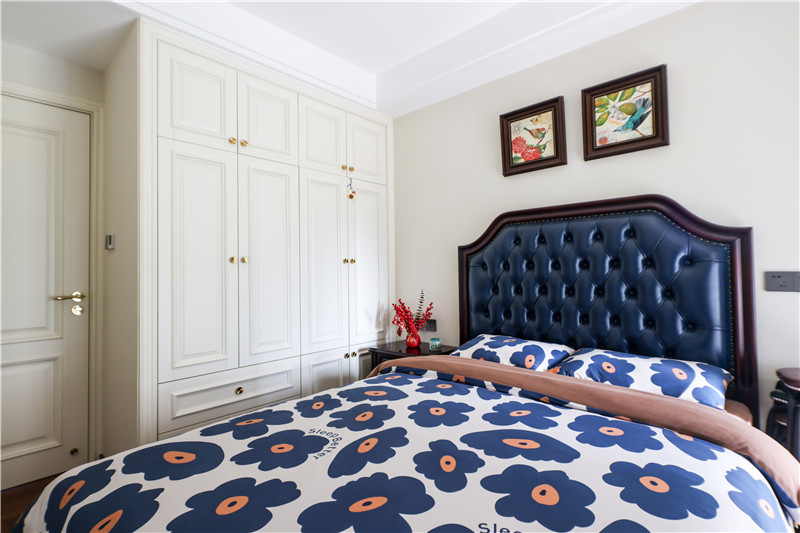 次臥:次臥做了組頂天立地式柜體,極光白與芬蘭白相互映襯,與床體深調互補,突出美式的高雅,這樣整潔自然的家居環(huán)境,讓人心動!