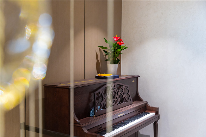 過道放置古式鋼琴,滿滿的書香氣息,休息時間一家人圍做賞琴,不失為一件美事。