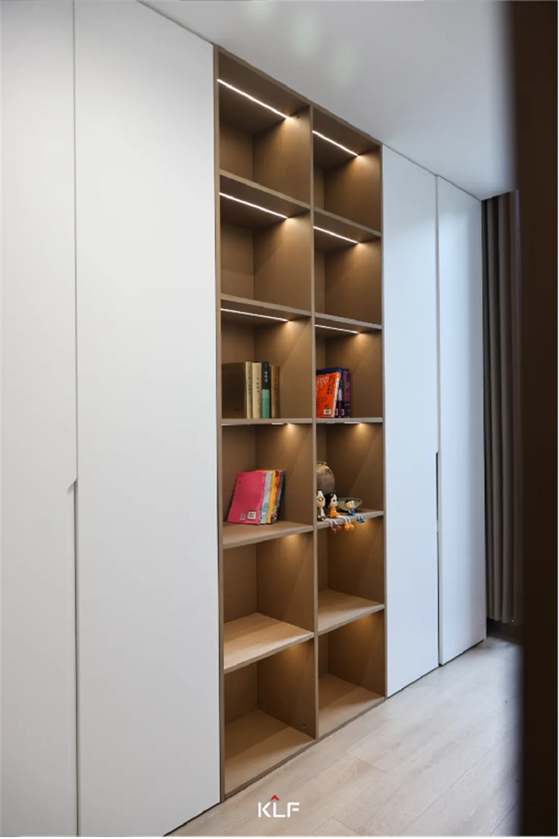 科技直紋/茶白作為過渡從客廳經(jīng)由走廊延展到臥室