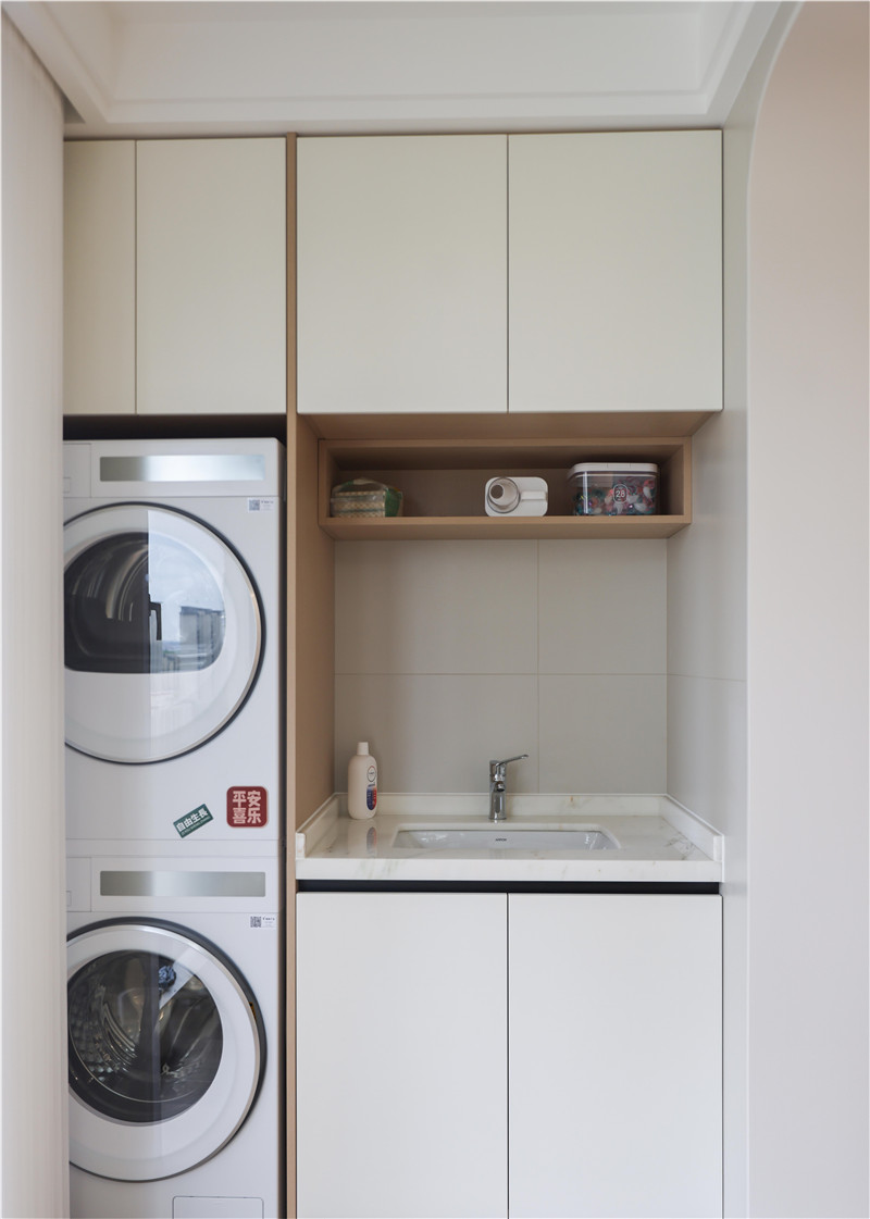 陽臺柜功能整合,收納更多日?,嵥?,洗烘雙位,一站搞定暢享便捷,貫徹實(shí)用主義。