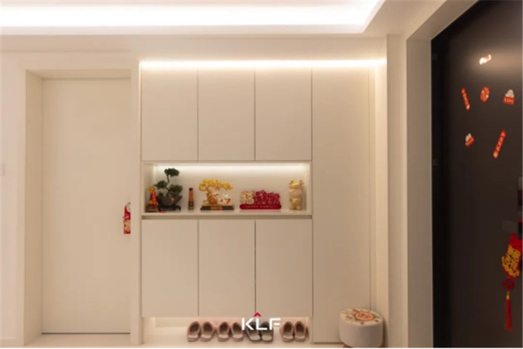 初見(jiàn)這個(gè)家,便有種一鏡到底的酣暢感,素雅色彩與洗練線條一路鋪陳,進(jìn)門(mén)便跌進(jìn)奶油色系的環(huán)抱中。入戶區(qū)域一側(cè)的奶油色到頂玄關(guān)柜美觀實(shí)用,鏤空設(shè)計(jì)方便進(jìn)出門(mén)換衣?lián)Q鞋和放置日常物品。褪下外部世界紛擾,療愈每一顆歸家的心。