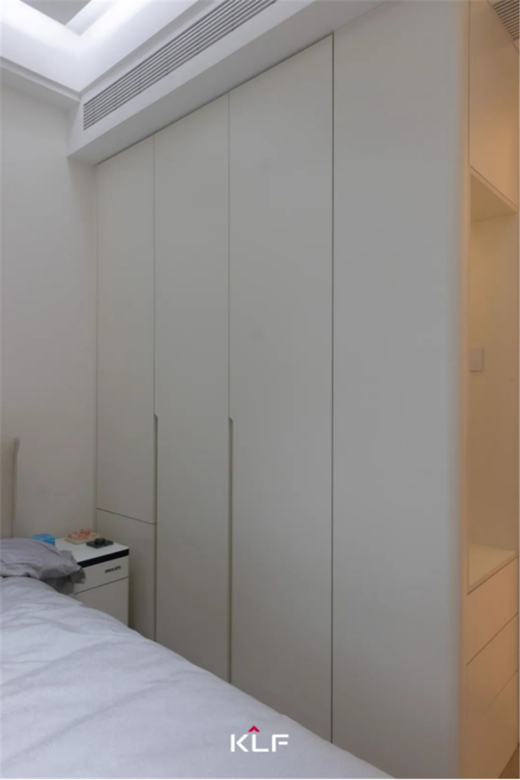 主臥自成一方靜謐天地,至簡(jiǎn)淺淡,如云朵般輕盈,循著留白的韻腳酣眠其間。臨光的通透感蒙上一層朦朧濾鏡,呈現(xiàn)出寧?kù)o無(wú)壓的舒適感。