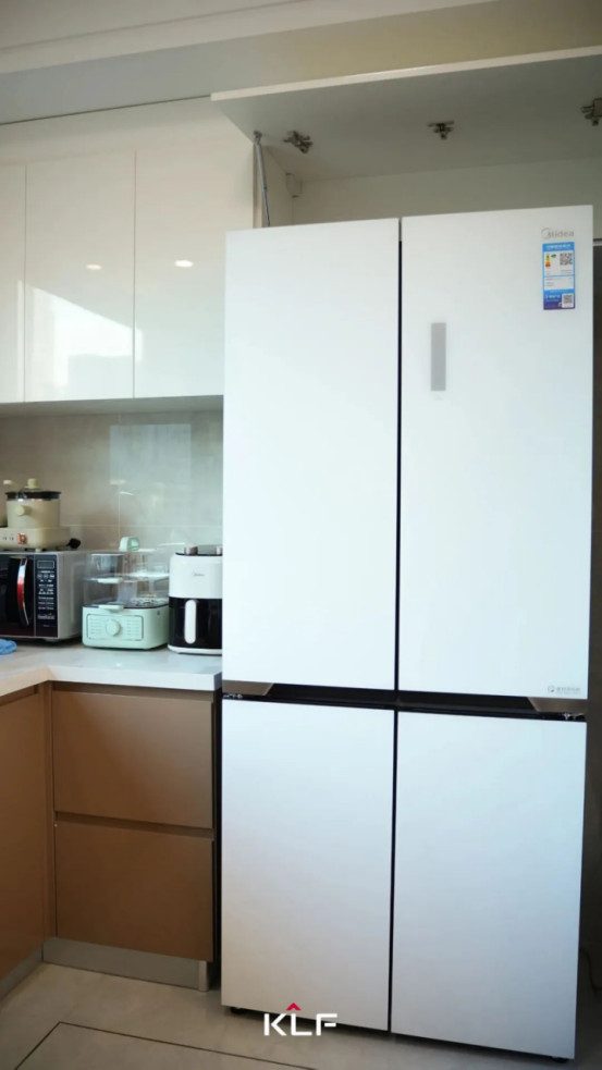 廚房L型櫥柜布局緊湊且功能性強(qiáng),黃金三角區(qū)讓洗切炒動(dòng)線行云流水。高低錯(cuò)落的吊柜與地柜構(gòu)成垂直收納矩陣,儲(chǔ)物功能強(qiáng)大,臺(tái)面整潔。