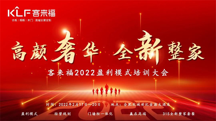 2022年2月17日-20日為期四天,以“高顏奢華,全新整家”為主題的客來福2022盈利模式培訓(xùn)暨3.15活動啟動大會在安徽合肥圓滿落幕,是對既往奮斗歲月的總結(jié),也是奮斗新征程的開啟。在2021年作出突出貢獻,業(yè)績輝煌的經(jīng)銷商在這里不僅得到表彰和肯定,也對未來的發(fā)展收獲了信心,希望在全新戰(zhàn)略格局的帶領(lǐng)下,以創(chuàng)新融合的發(fā)展思維和專業(yè)奮進的心態(tài)共同開啟客來福品牌未來新篇章,讓我們勠力同心,一起聚勢謀遠,共展虎年宏圖!