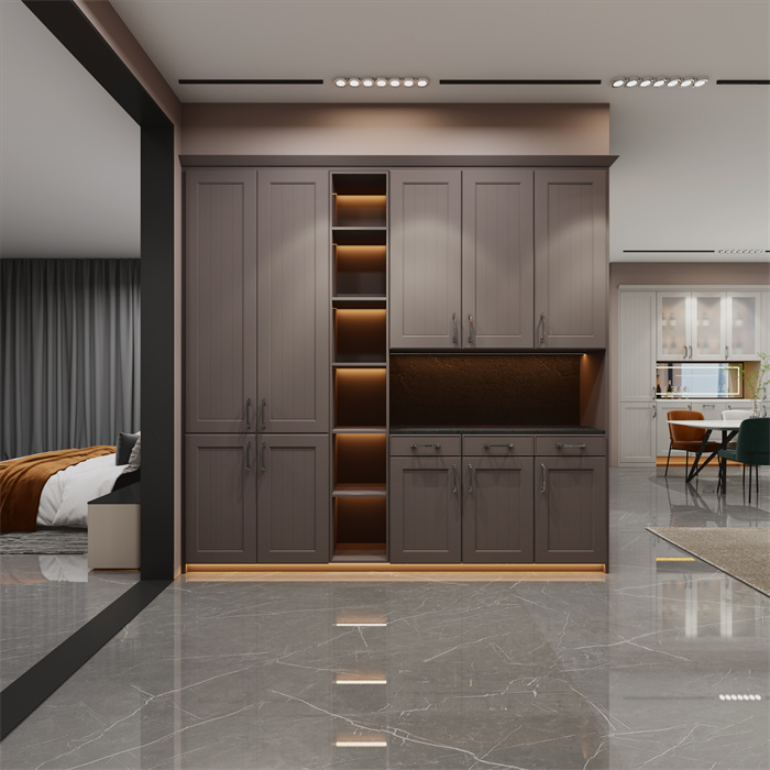 巧妙的空間設(shè)計(jì)與酒柜相互融合,以人為中心的社交空間,?論是獨(dú)自放松,還是舉辦派對(duì)的場(chǎng)合,都可以完美應(yīng)對(duì),輕松愉悅的?活享受,滿足高品位?群的生活需求。 不管你和家?是否愛喝酒,家?是不是總會(huì)放上幾瓶酒?而且還喜歡把美酒放在顯眼處,展示給自己或親朋好友!