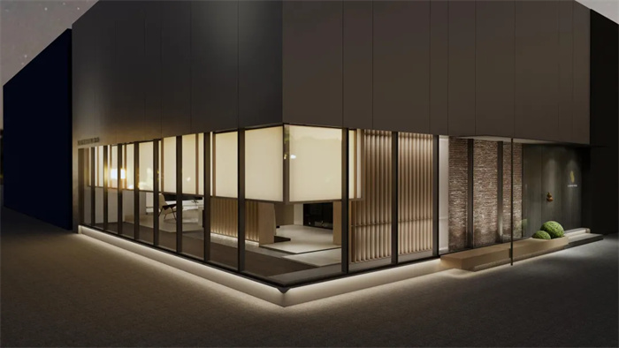 在即將到來的建博會(huì)上,革物為大家?guī)淼氖侨谌敫嗳宋那閼押蜁r(shí)代精神的東方系列作品。本次展廳共分為四個(gè)區(qū)域:洽談區(qū)、木皮產(chǎn)品區(qū)、極簡產(chǎn)品區(qū)、前廳接待區(qū),在展廳中融入拱形墻、外擴(kuò)圓弧、格柵設(shè)計(jì),將中式元素融入景觀中,形成相互交融,彼此和諧共生的綠色新景。