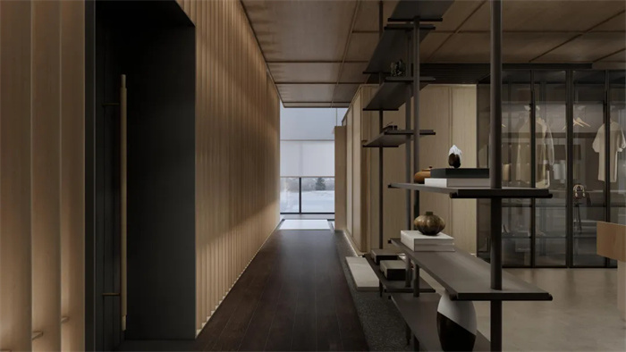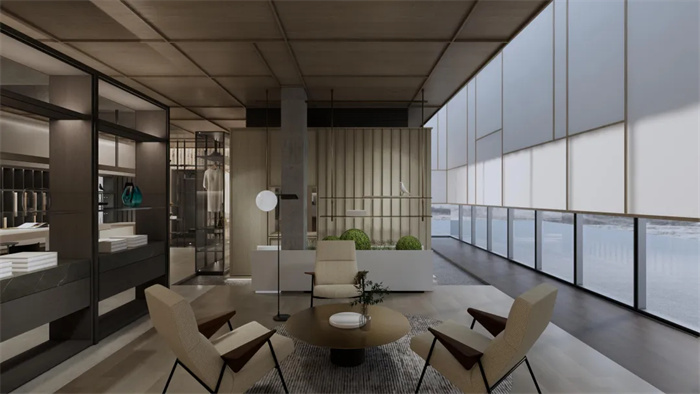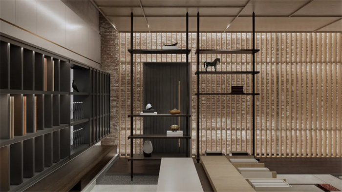 空間中看不見的氣韻是設(shè)計(jì)追問的本質(zhì)所在,東方意境的抽象文化,用線條和色彩的形式呼應(yīng)空間,建立秩序感與層次性,展開現(xiàn)代簡奢品質(zhì)生活畫卷中詩意棲居。