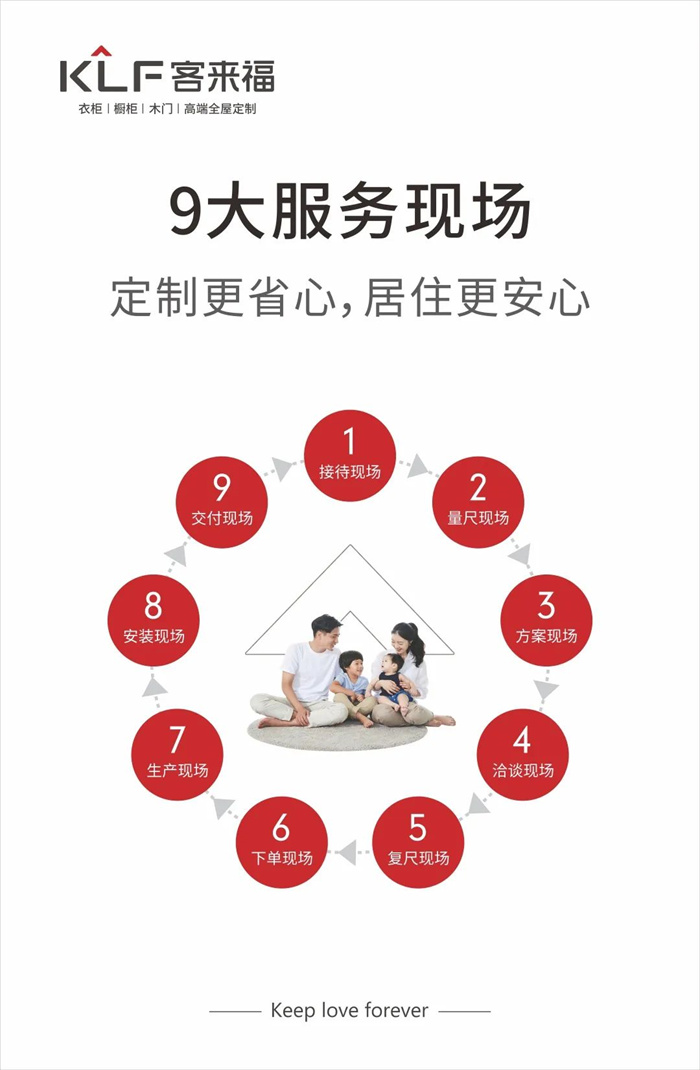 本次中國建博會(廣州)之行,客來福將在自己深耕的定制家居領(lǐng)域以產(chǎn)品及服務(wù)說話,用一如既往的推己及人、布道溫柔裝點你的溫房,以愛臻無界之境,正如客來?!?/span>KLF”講述“KEEPLOVEFOREVER”,讓“愛”無界。