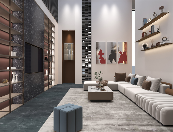 本次客來福展廳以復(fù)式結(jié)構(gòu)廣邀八方來客,一樓的現(xiàn)場搭建還原家裝場景,二樓洽談區(qū)帶人們了解設(shè)計亮點及品牌理念,將展廳作為審美契機點來構(gòu)建出家人們理想中的家居場景。