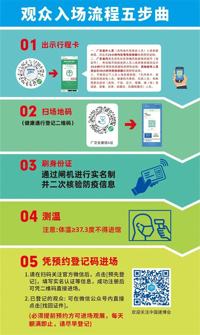 有決定參展的小伙伴們,需要嚴(yán)格落實今年廣州建博會國家相關(guān)疫情防控要求,提前預(yù)約登記,可以按照下列步驟實行呦~