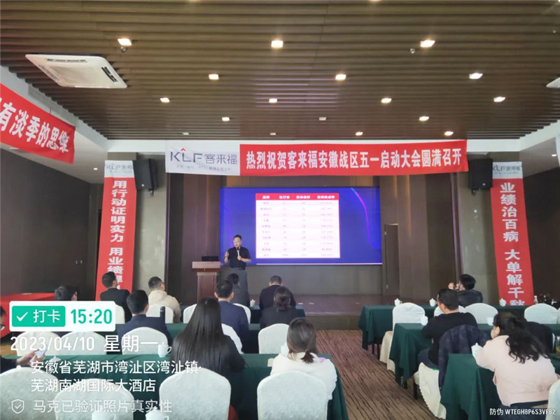 2023年4月10日,客來(lái)福安徽戰(zhàn)區(qū)五一啟動(dòng)大會(huì)于蕪湖圓滿召開(kāi),安徽戰(zhàn)區(qū)總監(jiān)姚磊與安徽戰(zhàn)區(qū)經(jīng)銷商齊聚本次大會(huì),共同商討五一活動(dòng)等相關(guān)事宜。