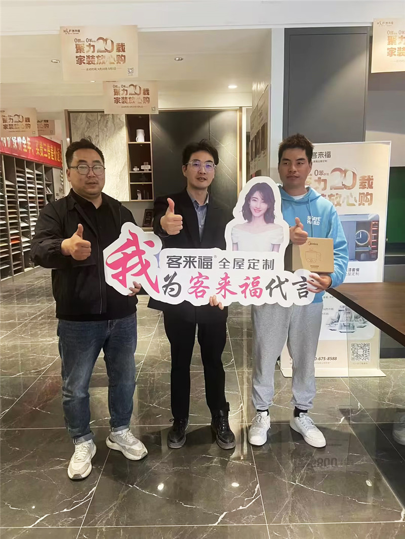 2023年4月10日—5月1日,在五一活動(dòng)期間,客來福運(yùn)營督導(dǎo)趙丁、殷賢旗走進(jìn)鹽城大豐客來福店,和店面老板、銷售、設(shè)計(jì)一起開展“聚力20載,迎5.1享大惠”主題活動(dòng)。
