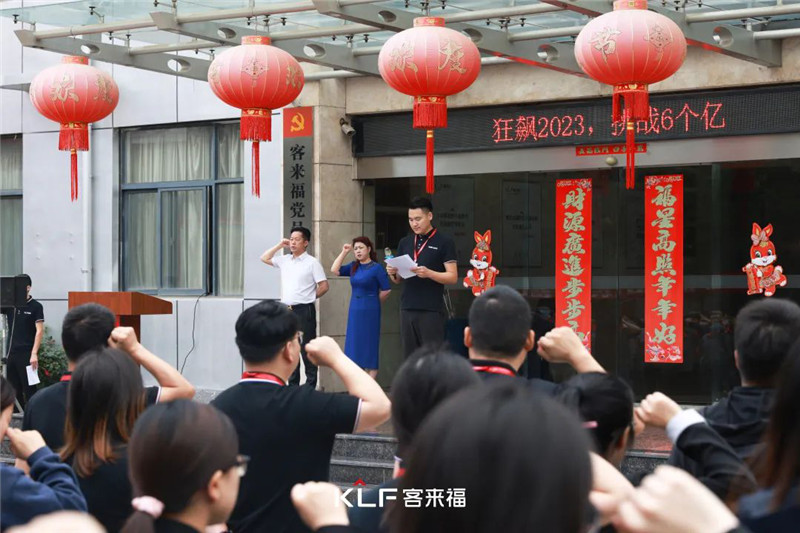 啟動(dòng)大會(huì)首先進(jìn)行莊嚴(yán)的升國旗奏國歌儀式,在國歌聲中客來福全體員工行注目禮。之后,全體員工宣讀企業(yè)文化。