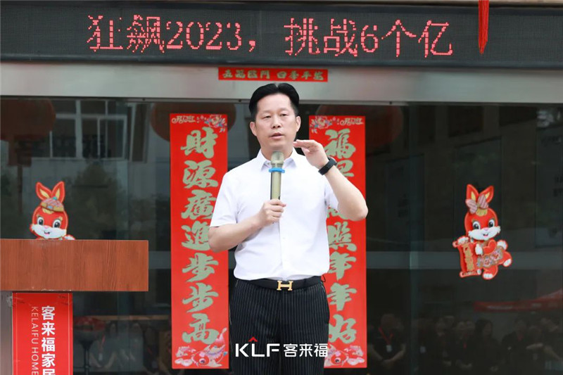 2023年6月6日上午,客來福家居于華東生產(chǎn)基地隆重召開6月啟動(dòng)大會(huì),客來福家居股份有限公司董事長尹其宏、總裁魏金華及客來福家居全體員工共同參與本次啟動(dòng)大會(huì)。