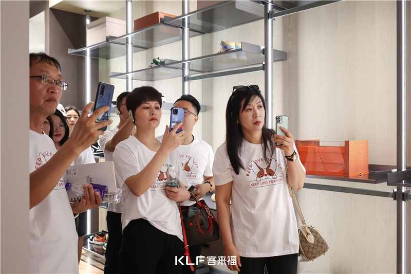 隨后,一行人走進(jìn)客來福·革物展廳及2023年新落地的13代展廳,通過親看及工作人員的講解,了解了客來?,F(xiàn)有的產(chǎn)品體系及高定產(chǎn)品的研發(fā)力,肉眼可見的質(zhì)感下是客來福二十年的家居初心。