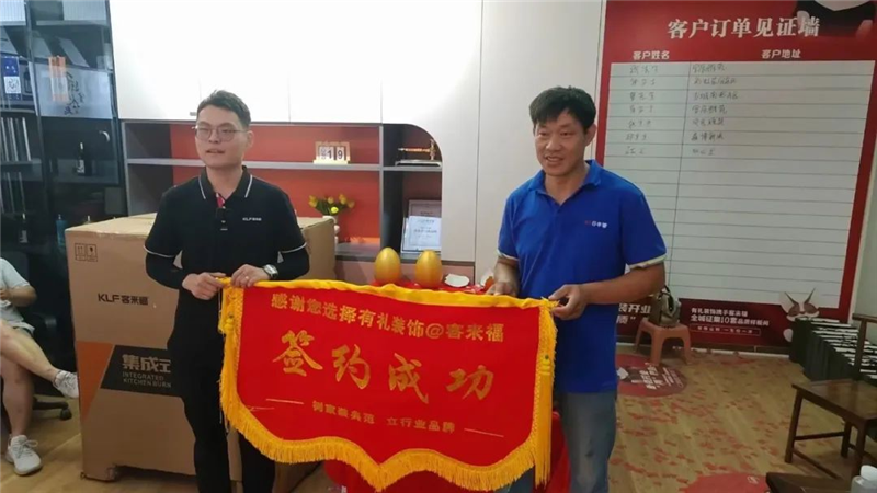 活動(dòng)中鐵三角運(yùn)營(yíng)團(tuán)隊(duì)與莒縣客來(lái)福全屋定制工作人員的默契配合,從進(jìn)店到介紹活動(dòng)再到簽約,彰顯出客來(lái)福人的專業(yè)態(tài)度與良好服務(wù),從而獲得眾多客戶一致好評(píng)。