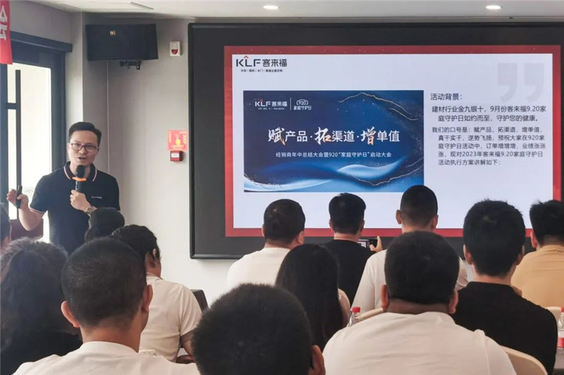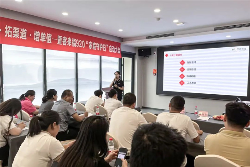 隨后,客來福運(yùn)營(yíng)團(tuán)隊(duì)人員分別上臺(tái)進(jìn)行渠道政策發(fā)布以及此次920家庭守護(hù)日活動(dòng)的深度講解,通過培訓(xùn)讓經(jīng)銷商家人們?nèi)嬲莆沾舜位顒?dòng)的差異化亮點(diǎn)及升級(jí)后的渠道政策,了解新產(chǎn)品的工藝和品牌優(yōu)勢(shì),增強(qiáng)經(jīng)銷商家人們的品牌自信和營(yíng)銷自信。