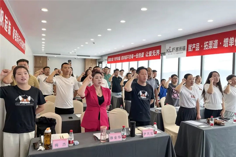 積力之所舉,則無不勝也!在運(yùn)營(yíng)人員的提議下,客來福家居董事長(zhǎng)尹其宏先生、總裁魏金華女士與現(xiàn)場(chǎng)的經(jīng)銷商家人們一同手拉手、心連心,這種莊重而富有溫度的宣誓環(huán)節(jié)讓在場(chǎng)的每一個(gè)人都更重視起團(tuán)隊(duì)的作用,勠力同心方能一往無前。