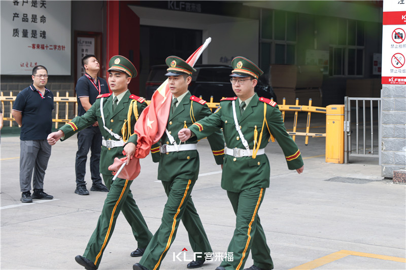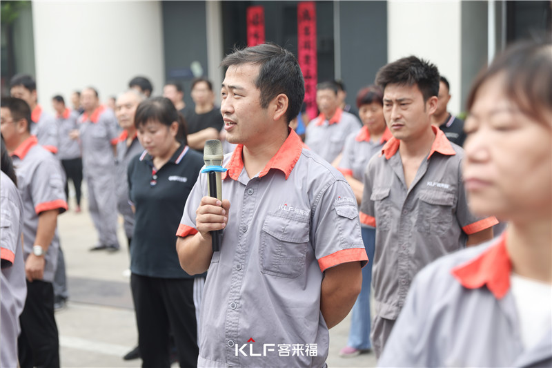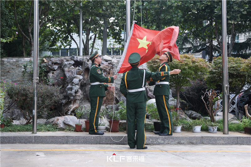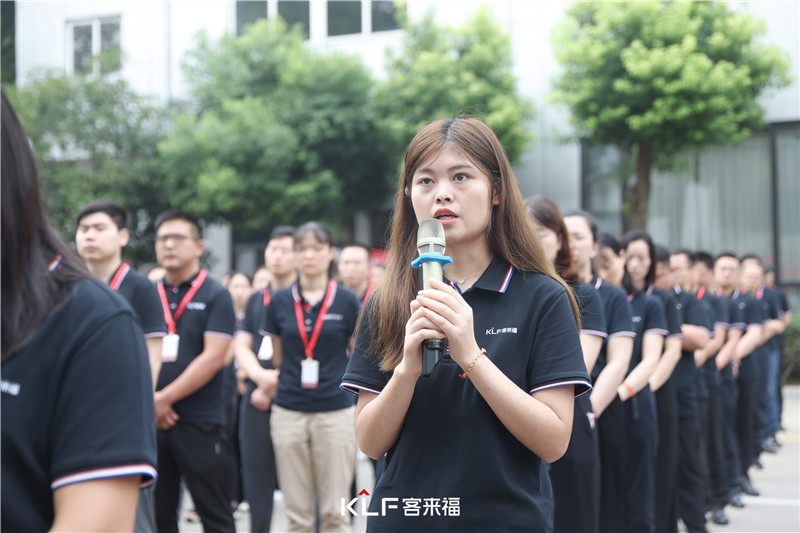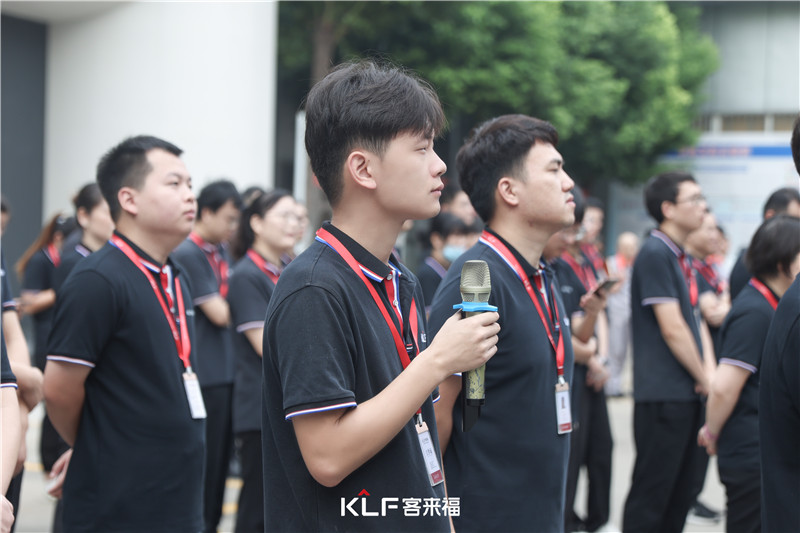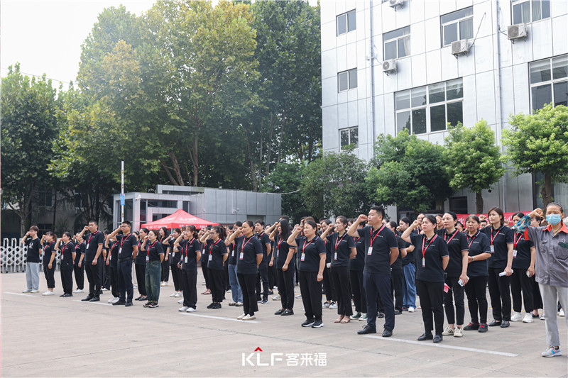 整隊(duì)后,客來福全體人員進(jìn)行企業(yè)文化宣誓,洪亮的聲音展現(xiàn)著全體客來福人的昂揚(yáng)斗志。大會(huì)第一項(xiàng),升國旗奏國歌,全體員工行注目禮。