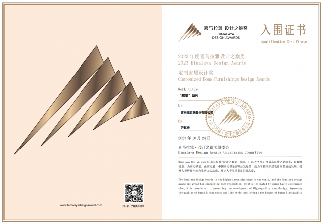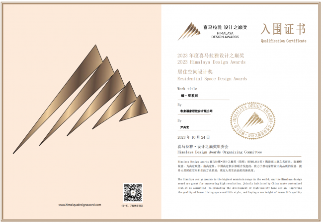 喜訊!客來福定制家居作品入圍喜馬拉雅·設計之巔獎