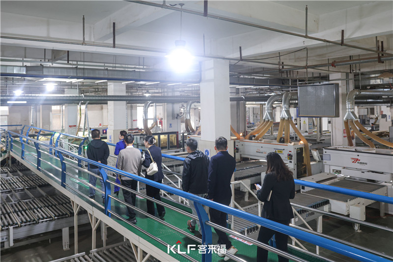 領(lǐng)導(dǎo)一行人首先參觀了客來(lái)福華東瑤海4.0工廠車間,對(duì)廠內(nèi)的板材制作工藝流程、信息化、智能化生產(chǎn)流程進(jìn)行詳盡的參觀了解,展現(xiàn)了客來(lái)福系統(tǒng)化、標(biāo)準(zhǔn)化的生產(chǎn)水平,以及在家居行業(yè)的品質(zhì)和實(shí)力。
