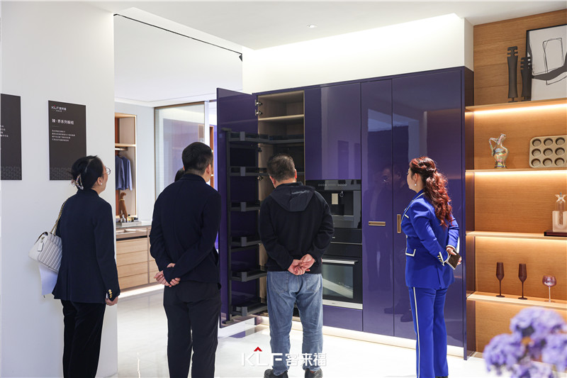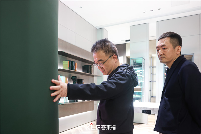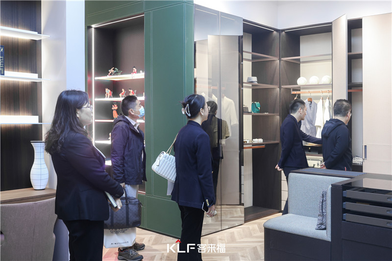 隨后一行人走進(jìn)客來(lái)福第十二代、第十三代展廳,分別感受了客來(lái)福家居產(chǎn)品的多樣化和優(yōu)秀品質(zhì),以及對(duì)高端全屋定制產(chǎn)品的細(xì)節(jié)與把控。