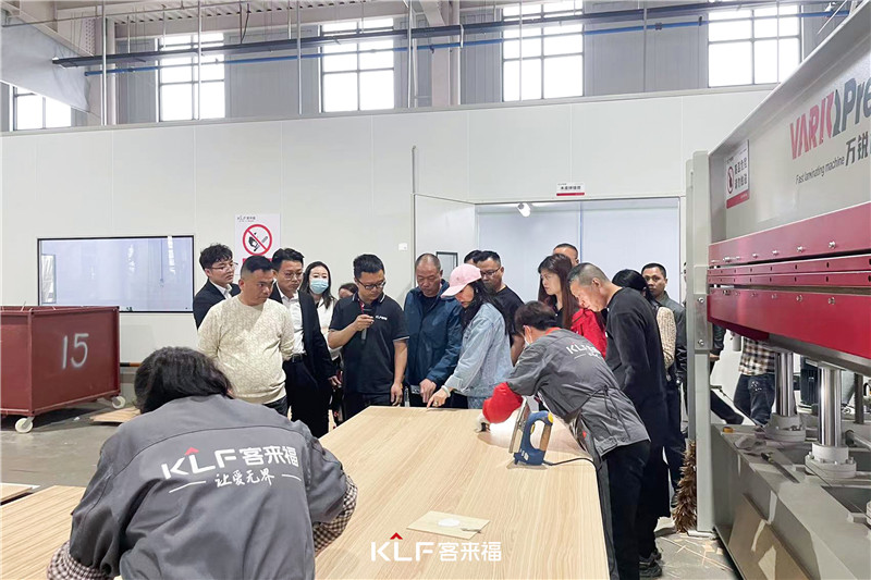 一行人走進(jìn)新橋4.0水漆智能產(chǎn)業(yè)園,2023年工廠正式投產(chǎn),意味著客來(lái)福生產(chǎn)體系的完善,展現(xiàn)出客來(lái)福下一個(gè)五年的“智能化”前景。