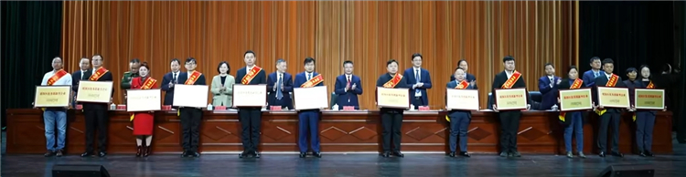 客來(lái)福智能科技股份有限公司總裁魏金華領(lǐng)取榮譽(yù)獎(jiǎng)牌(左起第三位)