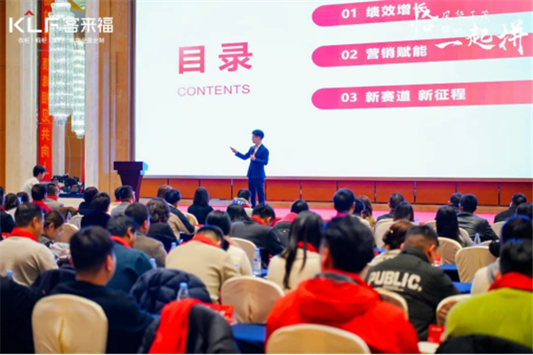 晚場會(huì)議伊始,客來福零售事業(yè)部副總尹邵杰上臺做2025年?duì)I銷戰(zhàn)略規(guī)劃分享。他指出,隨著新房紅利減退、大宗渠道弱化,家居行業(yè)正進(jìn)入加速洗牌的新時(shí)代?!盁o整裝不增長”成為共識,迫使定制企業(yè)全面升級精細(xì)化服務(wù)思維,從單純的產(chǎn)品銷售轉(zhuǎn)向提供“空間解決方案”。未來,客來福要堅(jiān)守以定制產(chǎn)品為核心的整裝服務(wù)模式,與上下游行業(yè)深度合作、雙向賦能,共同打造全品類交付組合拳,全力推進(jìn)大家居戰(zhàn)略落地,實(shí)現(xiàn)大家居強(qiáng)流量、促轉(zhuǎn)化、擴(kuò)單值、優(yōu)交付的絕對生態(tài)體系實(shí)力。
